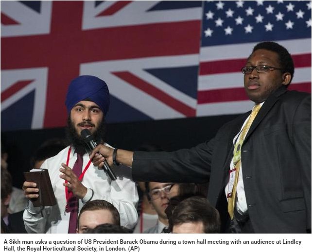 Responding to questions from a young Sikh at a town hall-type meeting in Westminster on the second day of his three-day visit to London, Obama said he had taken an “adamant stand” on not racially profiling people at US airports.