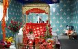 On top of this sheet, place your Manji Sahib or low platform. If you prefer, you can also use a Palki Sahib or canopied throne. Place another clean sheet over the Manji Sahib.