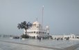 The shrine itself, centrally placed amidst a huge marble courtyard, marks the site where Guru Nanak was cremated. Adjacent to it is a smaller canopy with a platform covered in an embroidered chadar (sheet), just as one would find in dargahs of Muslim pirs (saints).