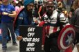 Get Off your ass and Vote ! Because there are fewer things more American than a man dressed as Captain America urging a disillusioned populace to go place a vote for the candidate they hate the least.