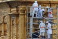 A team from a UK-based Sikh volunteers’ group started cleaning the gold plating on Golden Temple that has been affected by pollution, here on Thursday.