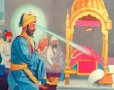 [Guru Gobind Singh]opened the Sacred Granth, placed five paise and a coconut before it, bowed before it, then went round the Granth five times...