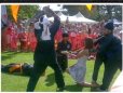 A few brave spectators even volunteered to take part in the Sikh martial arts demonstration by holding a banana to be chopped by a swordsman.