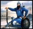 The Guru, after having blessed him with temporal authority, adorned him with a sword, a bow, five arrows with golden tips from his quiver, and an insignia of the Khalsa, the Nishan Sahib.