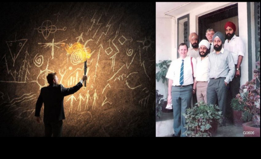 Pic.: R to L: We brothers. Varinder, Gurvinder, Parvinder and late Paramjeet with visitors from Bendix Corp. (1984)