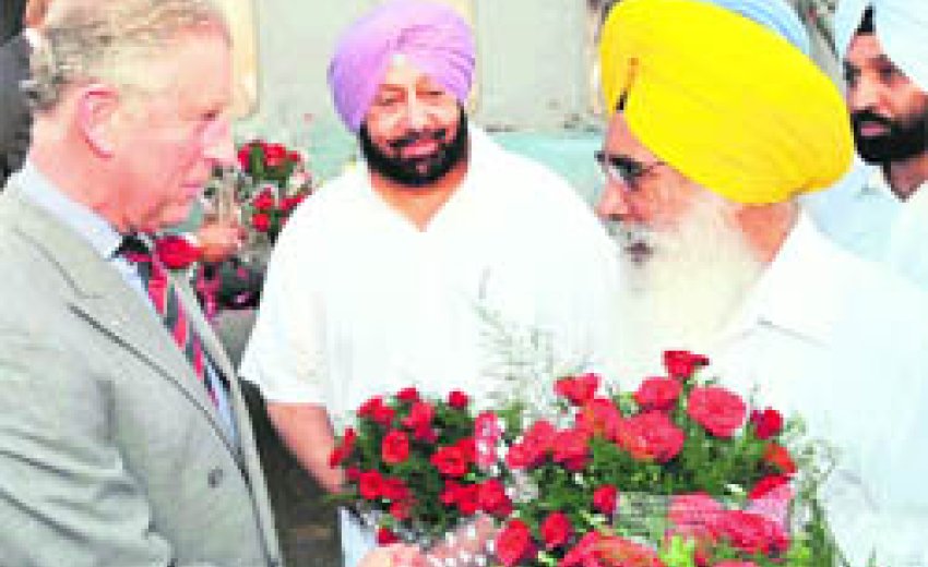 04 Oct. 2010 ~ FATEHGARH SAHIB: Prince Charles who visited Punjab for the second time on Monday, during his previous visit in 2006 and on several other occasions went overboard to shower praises for Sikhs, Punjab farmers and contribution of the border state in the green revolution of India.