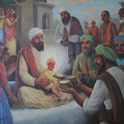 The Pir presented a riddle. He placed two bowls of candy before the child; one bowl was purchased from a Hindu’s shop, and the other from a Muslim’s shop, thus signifying the two major religions of India. The riddle sought answers to an unspoken question of seeking guidance as to which religion this divine prophet would belong to. The proper response would permit the Pir to pronounce the Guru’s divinity and his prophetic authority to lead the people.