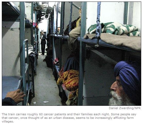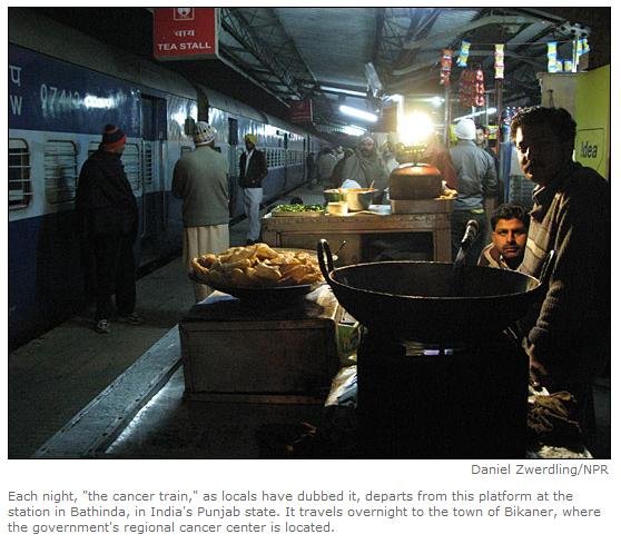 Locals call No. 339 by a chilling name — "the cancer train." It routinely carries at least 60 cancer patients who make the overnight journey with their families to the town of Bikaner for treatment at the government's regional cancer center.