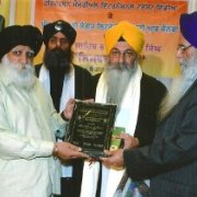 Simriti Granth was first released by Gian Singh Sandhu after then the first copy of the “Bhai Sahib Bhai Randhir Singh Ji Simriti Granth” was presented by the Editor Bhai Jaiteg Singh Anant to Hononary Scholar Dr. Davinder Singh. Both Bhai Jaiteg Singh and Gian Singh Sandhu presented a Memorial Award to Master Ujagar Singh Khalsa (Vancouver) and Bhai Davinder Singh Grewal. They were also given a copy of the Simriti Granth, and honoured with a dastar, shawal, plack, portrait of Bhai Sahib and citation with a bouquet of flowers.