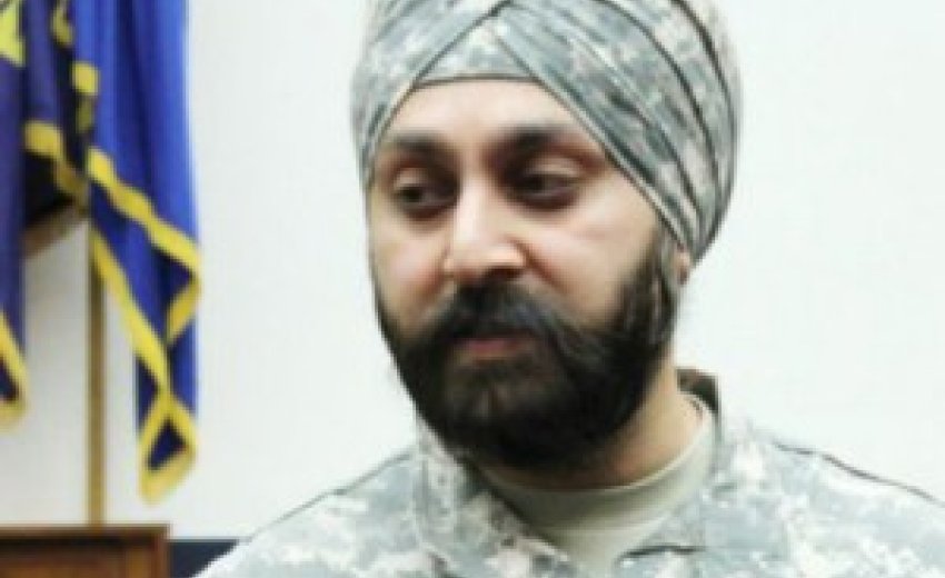 | Photo: /Religion News ServiceArmy Maj. Kamaljeet Singh Kalsi is among those pushing for a change in military policy to change the policy to prevent Sikhs from having to choose between God and country. Today, Sikhs must get special permission to wear and turban and have a beard as dictated by their religious beliefs. |