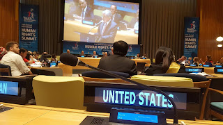So the summit was 3 days, with the first two days being held at the United Nations Headquarters in New York, and the last in Harlem. During the first two days, delegates from all over the world ( I believe there were over 44 countries represented) got to hear from so many speakers-- ranging from UN Ambassadors, to teachers, to rappers/poets, etc. It was truly a diverse group of speakers who spoke on issues ranging from discrimination, to human trafficking, to other advocacy issues. For me, there were a few standout speeches that will always stick with me.