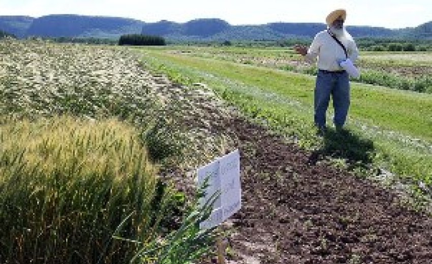 | Jeff Labine, tbnewswatch.com Thunder Bay Agricultural Research Station director of research and business Tarlok Singh Sahota leads a tour on July 23, |