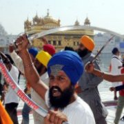| Sikh youth with swords at the Golden Temple. Photo: Vishal Kumar |