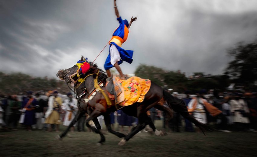 The sense of liberated living could be felt in the energetic expressions of Nihangs riding their horses at high speeds, while performing acrobatics on the horse backs.