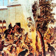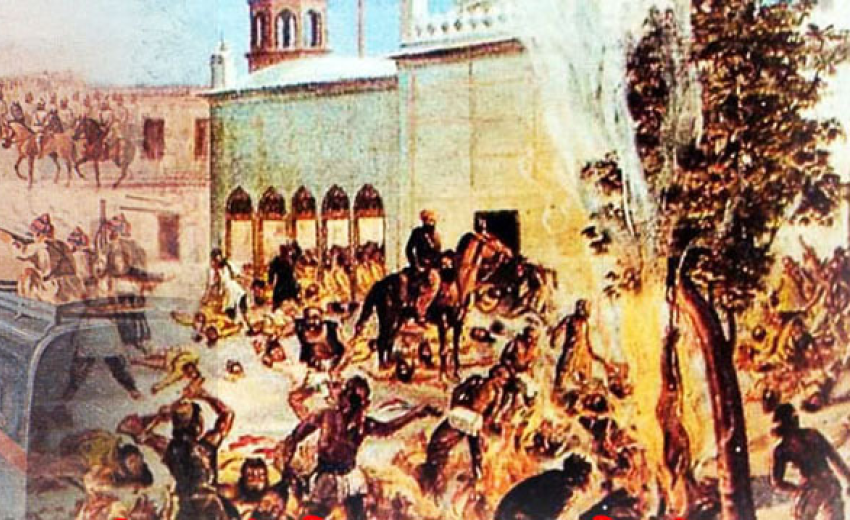 The Mahant had got the news of the squad’s arrival at Chander kot on the 19th February evening. He had gathered his men at night and briefed them about their duties. After the squad had sat down around sanctum sanctorum, the Mahant signalled his men to carry out the predetermined plan. He ordered his mercenaries to kill everyone in the Sikh group. The Mahant’s men closed the main gate and started firing from roof tops. Twenty-six Sikhs became martyrs to those bullets in the courtyard while another sixty or so sitting inside the Darbar Sahib became targets of bullets. When the Mahant’s men saw no one moving, they came down with swords and choppers. The hired goons wielded swords, spears, hatchets and other lethal weapons to mercilessly slaughter the peaceful and un-provocative Sikhs within the very premises of the Gurdwara Any Sikh they found breathing was cut to pieces. They fired bullets at the Sikhs in Gurdwara hall. Several bullets pierced through Sri Guru Granth Sahib. The dead and dying Sikhs were then dragged to a pile of logs which had been collected earlier and consigned to flames.