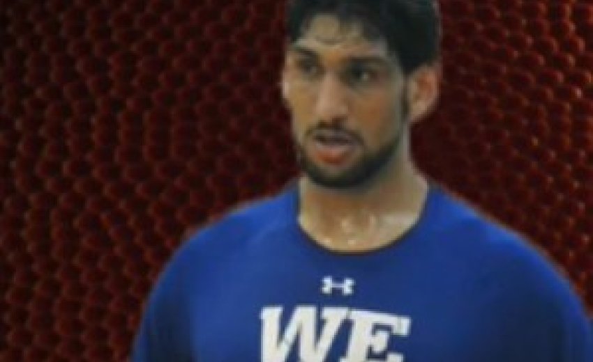 Look at him lifting stuff, dwarving very tall people, and dunking stuff in this Draft Express workout video: