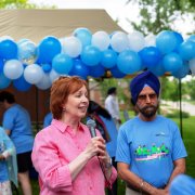 This year’s “Well-being for All” Run/Walk was dedicated to the 550th. birth anniversary of Guru Nanak Dev Ji the founder of Sikh faith, to honor his spiritual journey walks, where he traveled over 40,000 km, over a period of 24 years, visited nine countries, mostly on foot, having interfaith dialogues with people he met along the way, reminding the importance of truth, social justice, love, respect for each other’s faiths and compassion. The Gurmat Sunday School students, Sehaj Kaur, Ajeet Singh and Asees Kaur, spoke about what inspires them about Guru Nanak.