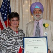 Long time Indiana resident Kanwal Prakash "KP" Singh was among the 22 outstanding Hoosiers who received one of the State of Indiana's highest awards designated for senior citizens who have made significant contributions to the State in different fields and continue to volunteer their gifts and talents, energy and service to worthy causes and community initiatives, institutions and areas of critical need that make a difference to the communities across the State.