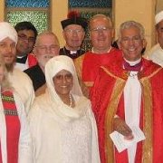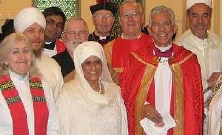 Bhai Sahiba Bibiji Dr. Inderjit Kaur Khalsa with Monsignor Jerome Martinez y Alire (center), and Interfaith Leaders at Santa Fe’s Cathedral Basilica of St. Francis of Assisi, celebrating the Basilica’s and the City of Santa Fe’s 400th Anniversary year