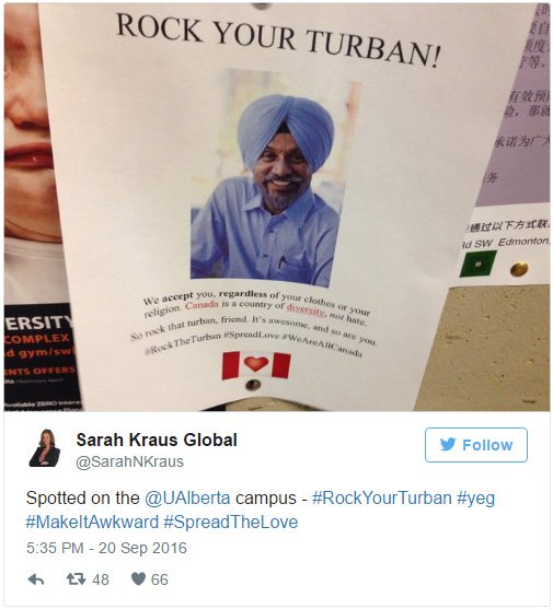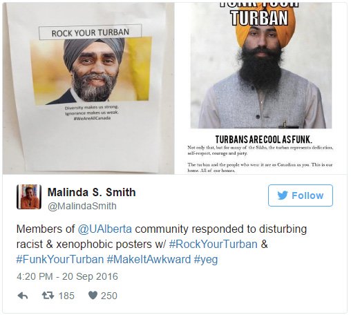 Just one day after at least a dozen disturbing posters were spotted on the University of Alberta campus, political and cultural leaders along with Canadians in general are rallying behind the Sikh community.