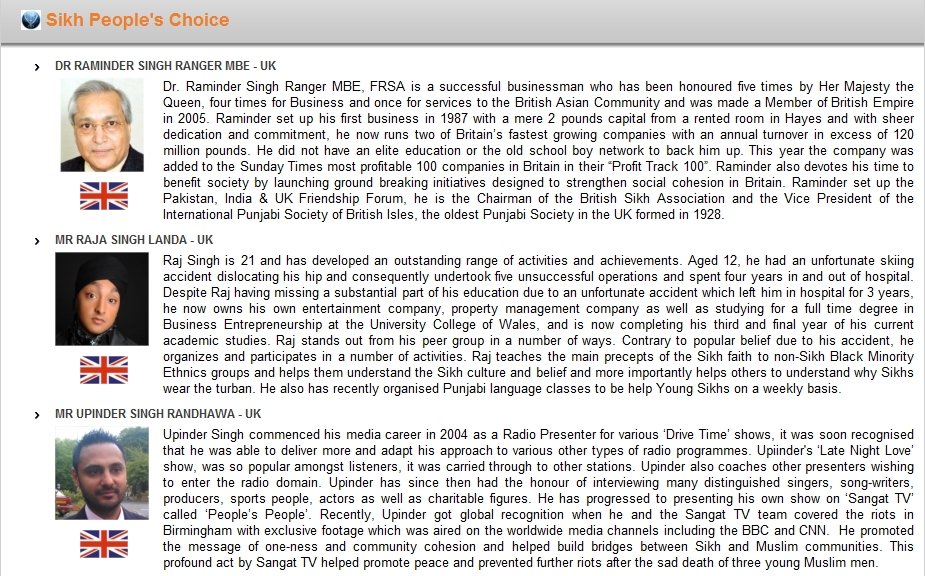 For a detailed list of other Nominees please visit: http://sikhawards.com/nominee.aspx