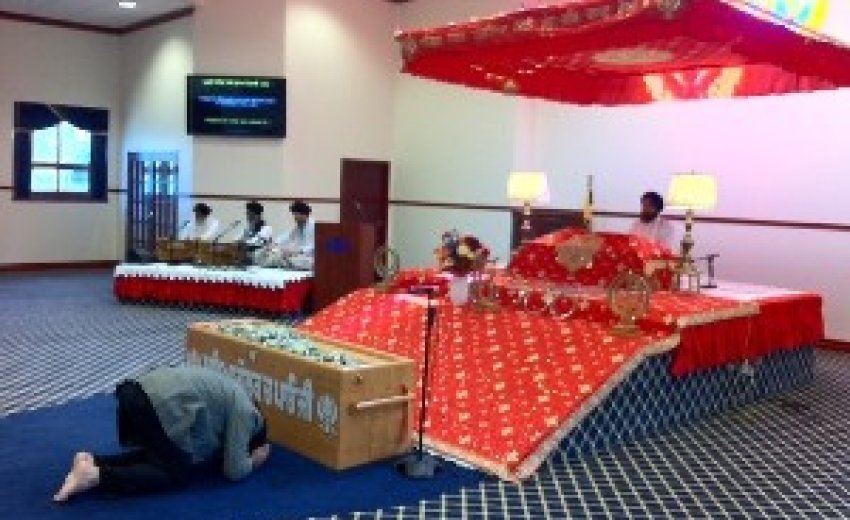 | A Sikh Devotee paying respect to Guru Granth Sahib on arrival Credit: Manmohan Singh Bharara (Manny) |