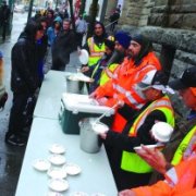 Initially, this program will run every two weeks (on the first and middle weekend of each month). The food prep will commence at 9 am Saturdays at the Vancouver Gurdwara and will be served downtown at 1:30 on Hastings and Main St.. This is a collective community effort and everyone is welcomed to help and encouraged to bring items that are easy to serve (small individual juice containers, sandwiches, wraps, nutritional bars, etc.). The next food serve date is December 15.
