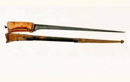 The item has been described as “iron sword inscription- on the sword mentions the name of the Sikh religious Guru Hargobind Das. The inscription is in Persian language and written in Nastaliq Style of Caligraphy”. The small dagger can be better described as a PeshKabz and dates from the eighteenth century based on the information supplied, it is supported with a sheath.