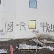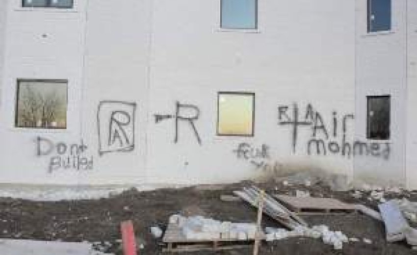 | A Sikh house of worship under construction in Sterling Heights was vandalized this week by what appears to be anti-Muslim graffiti. / Sikh American Legal Defense and Education Fund |
