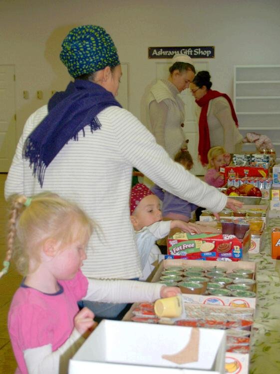 In that spirit, in addition to our two weekly langurs, the children pack food which has been donated by ashram members for the backpack program. Every Friday morning a member of the Sangat drops the food off at a local school which is just a minute away from our ashram.