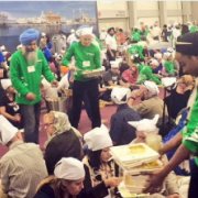 | Muslims, Christians, Sikhs, Buddhists, and Hindus serving food together during the 2015 Langar. |