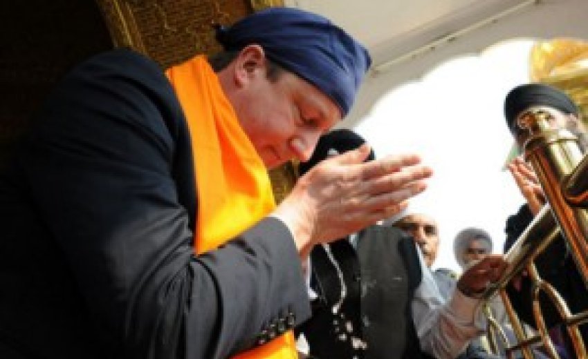 | David Cameron at the Sikh Golden Temple in Amritsar, India, 2013 |