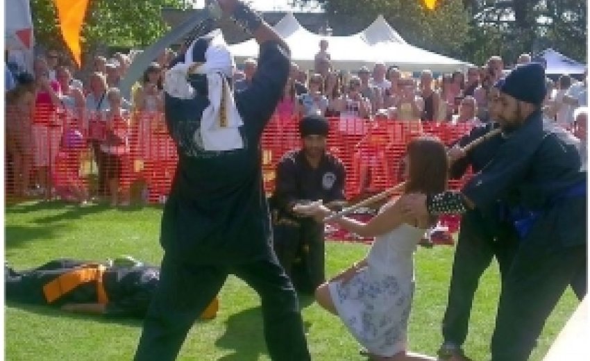 A few brave spectators even volunteered to take part in the Sikh martial arts demonstration by holding a banana to be chopped by a swordsman.