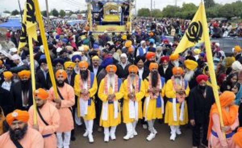 More than 20,000 worshippers took part in a religious procession to celebrate the birthday of the Sikh founding father Sri Guru Nanak Dev Ji.