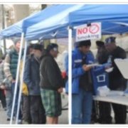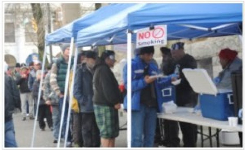 Tuesday, January 14th, 2014: VANCOUVER – The Vancouver Sangat serving food to the needy in downtown Vancouver marked their first anniversary last month. Thousands of hungry people in need have been served with this initiative. Many of the volunteers were pioneers with GNFK (Guru Nanak’s Free Kitchen) and wanted to bring a similar program to Vancouver. For the past year they have been serving food every second Saturdays in downtown Vancouver. The group started with a handful of volunteers with limited resources.