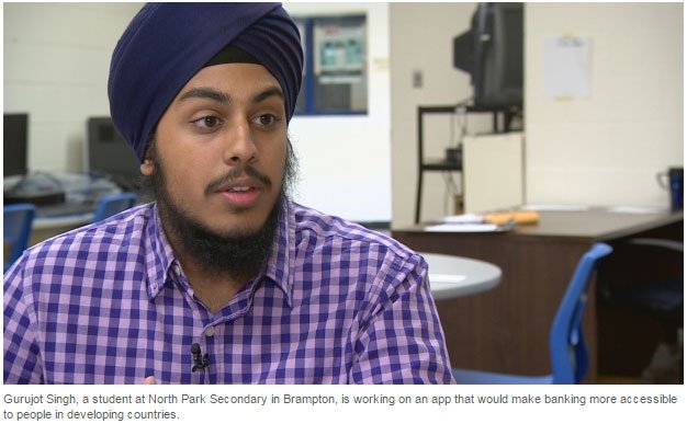 The 17-year-old North Park Secondary School student conceptualized a phone app that would offer virtual financial services to India's poor and presented his idea at the J7 Summit in Germany last May.