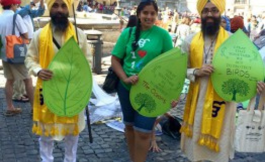 The Sikhs included EcoSikh India Project Manager Ravneet Singh, EcoSikh USA Project Manager Sumeet Kaur and Gurmel Singh a religious teacher and an emerging environmentalists from HongKong. The EcoSikh team was specially invited to this international People's Climate March (see below)and a convergence of young emerging leaders on climate action which was organised by FOCSIV, an Italian Catholic organisation and Our Voices, an interfaith global climate movement.