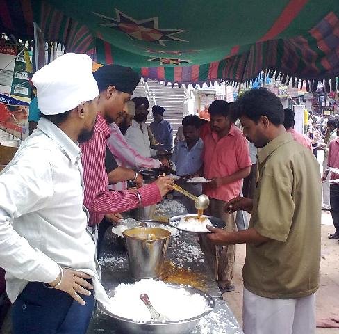Hyderabad, September 6 : As a mark of respect to the departed late Chief Minister Y S Rajasekhara Reddy who died in a helicopter crash in Nallamalla Forests of Kurnool district a few days ago, members of Sikh Youth Association, Ameerpet today organised a mass poor feeding programme (Annadanam programme).