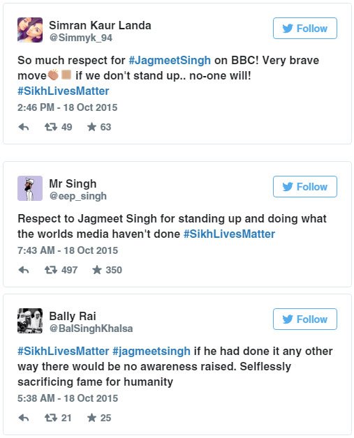 Information from social analytics firm Topsy shows that #SikhLivesMatter first began to gain real traction on Twitter last Wednesday, after the protests spread – the hashtag was shared over 30,000 times in the past seven days. Singh's BBC appearance appears to have re-sparked the debate in Britain, where the Sikh population has been estimated to be around 600,000, with many arguing that the British news organization has not done enough to cover the protests.