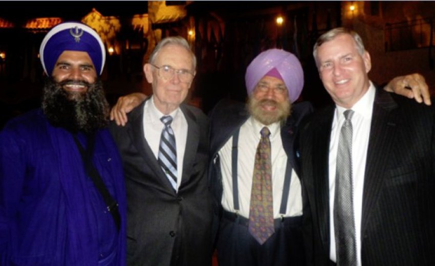 (L-R) Gurinder Singh, Rev. Richard Hamilton, KP Singh, Indianapolis Mayor Greg Ballard (2014)