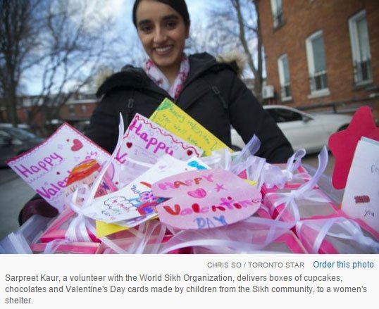 Members of Toronto’s Sikh community were behind the surprise doorstep delivery as they dropped off the custom-made Valentines to four women’s shelters across the GTA.