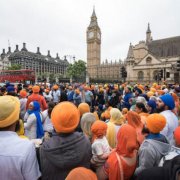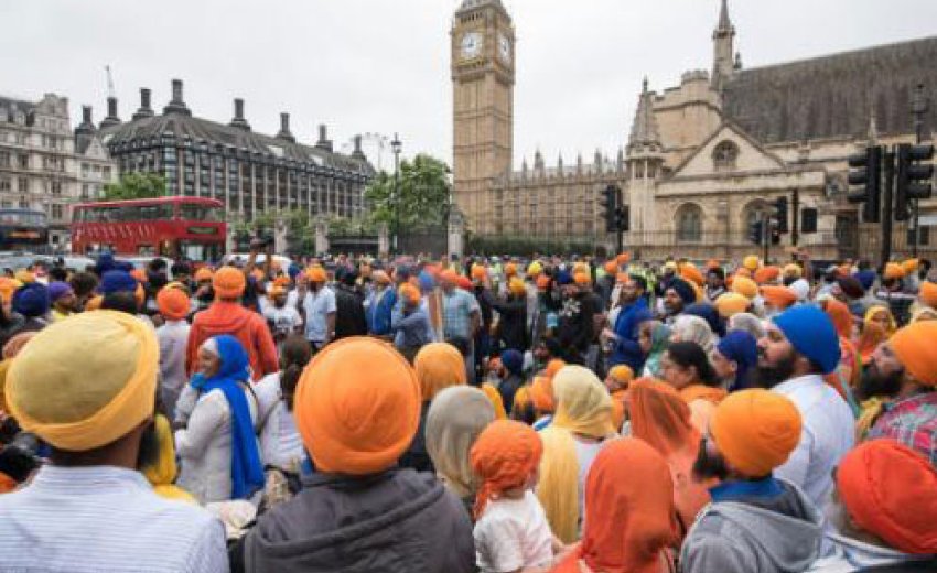 The demonstration, which blocked the roads outside the Houses of Parliament in London, was called by the Sikh Federation (UK), the largest Sikh organisation in Britain.