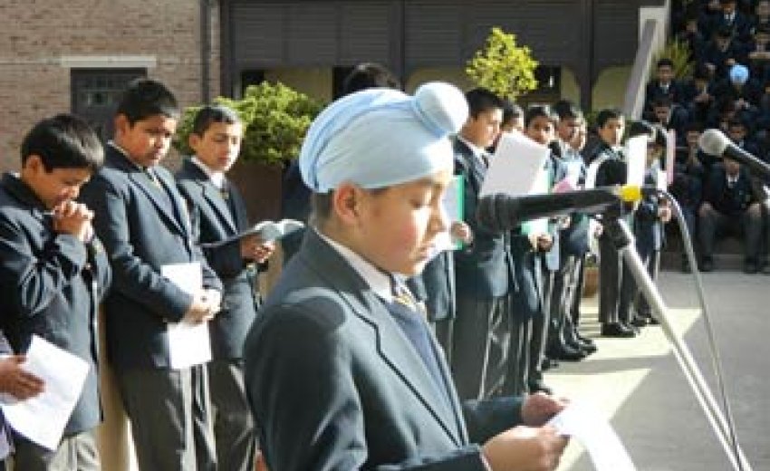 Morning assembly taking place in John Bosco school in Shimla.