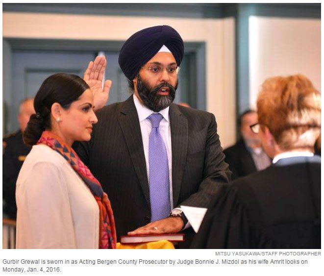Grewal, a married father of three, becomes the first South Asian prosecutor in the state and the first person of the Sikh religion to occupy the office. Grewal, who speaks Punjabi and Hindi, comes from one of the fastest-growing segments of New Jersey’s population.