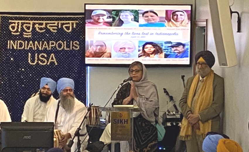 Maninder Singh Walia, Chairman -Board of Trustees of the Sikh Satsang of Indianapolis greeted and thanked everyone for being a part of Remembrance Prayer Service and read the names of all victims from the Indiana General Assembly Resolution; all the while their photos were on the two screens in the Divaan (Sanctuary) Hall on either side of the elevated platform inder brocaded silks was Sri Guru Granth Sahib (The Sikh Holy Scripture)
