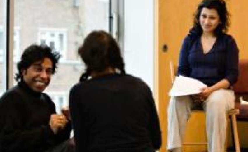 | High drama: Shiv Grewal, Priyanga Burford and Chetna Pandya in rehearsals for Behud |