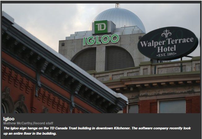 Igloo, a provider of software for intranets and document sharing, moved downtown nine years ago. It has expanded rapidly in past three years and with 90 employees ran out of space in its previous location on Frederick Street. Igloo recently took over a floor in the TD building. Dan Latendre, the firm's CEO, says it will expand into another floor by next June.
