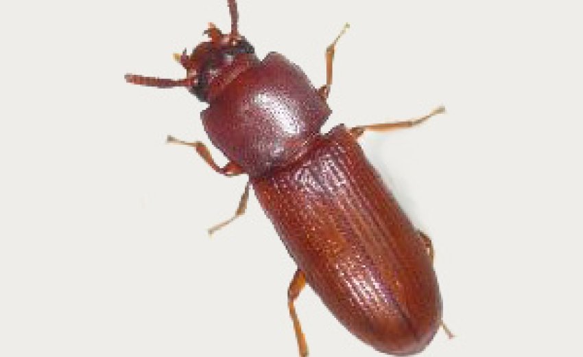 The broad-horned flour beetle is a well-known pest that feeds on flour and grains, such as porridge and semolina. Around three to four centimetres long and reddish-brown in colour, they live all over the world.