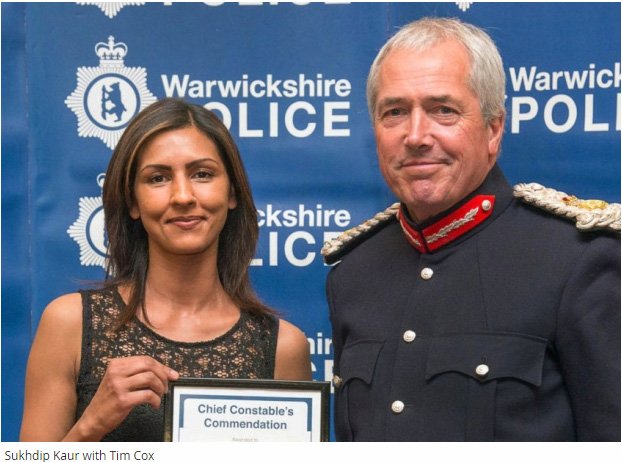 Sukhdip Kaur is one of two members of the public to be praised for their quick thinking actions, public spiritedness and compassion.