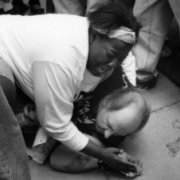 There were shouts of "Kill the Nazi" and the man began to run - but he was knocked to the ground. A group surrounded him, kicking him and hitting him with the wooden sticks of their placards. Mob mentality had taken over. "It became barbaric," says Thomas. "When people are in a crowd they are more likely to do things they would never do as an individual. Someone had to step out of the pack and say, 'This isn't right.'" So the teenager, then still at high school, threw herself on top of a man she did not know and shielded him from the blows. "When they dropped him to the ground, it felt like two angels had lifted my body up and laid me down." For Mark Brunner, a student photographer who witnessed the episode, it was who she saved that made Thomas' actions so remarkable "She put herself at physical risk to protect someone who, in my opinion, would not have done the same for her," he says. "Who does that in this world?"